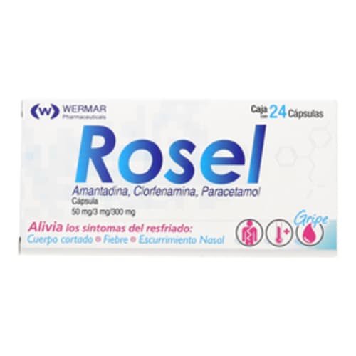 / Rosel amantadina, clorfenamina, paracetamol 50/3/300 mg con 24 cápsulas